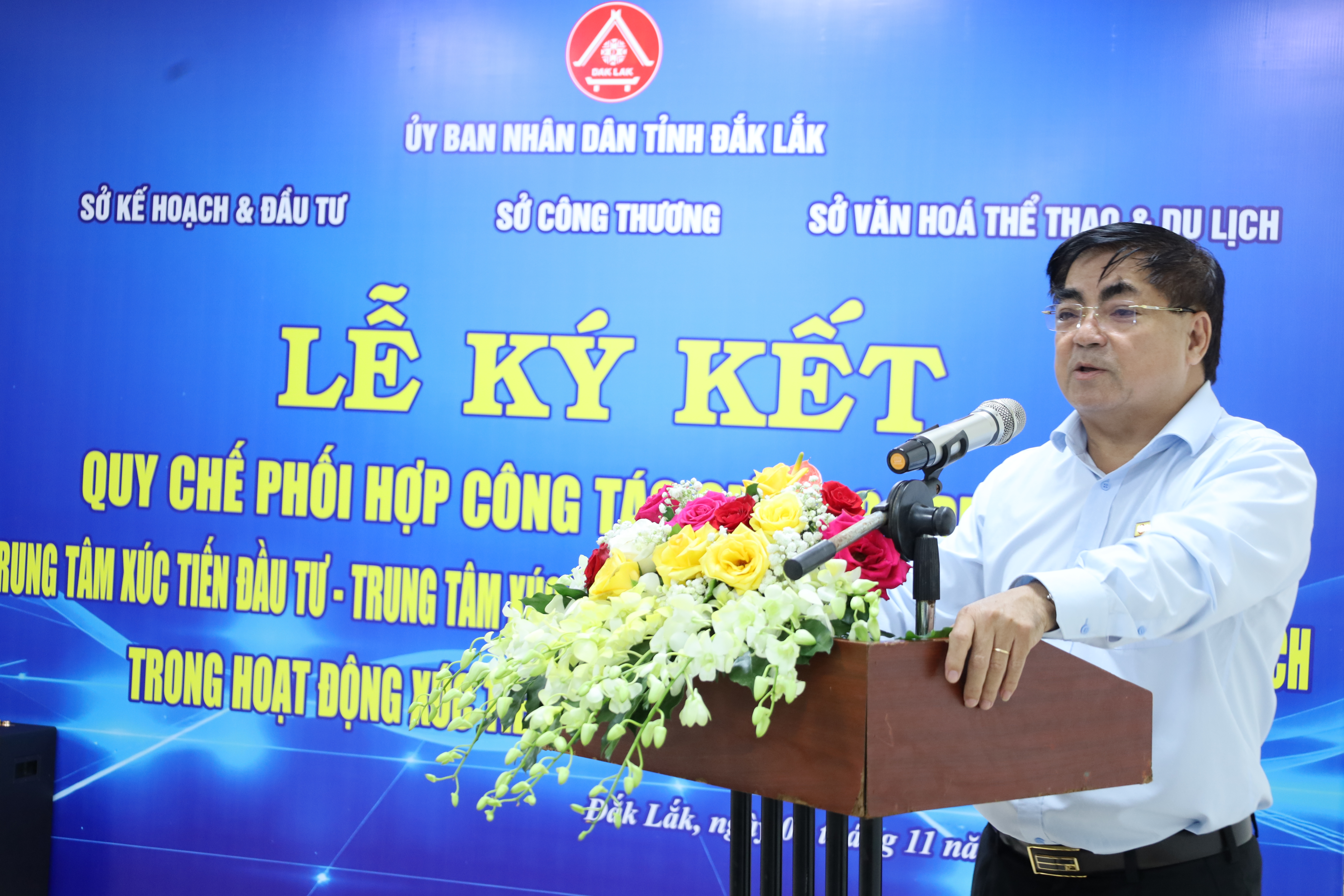 Chiều 1/11, Sở Kế hoạch và Đầu tư phối hợp với Sở Văn hoá, Thể thao và Du lịch và Sở Công Thương tổ chức Lễ ký kết Quy chế phối hợp giữa Trung tâm Xúc tiến đầu tư, Trung tâm Xúc tiến thương mại, Trung tâm Xúc tiến Du lịch trong các hoạt động xúc tiến đầu tư, thương mại và du lịch trên địa bàn tỉnh Đắk Lắk.